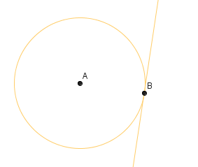 Goal: Construct a line (segment) at B tangent to the circle. A tangent line to a circle is a line that only touches the circle at one point.