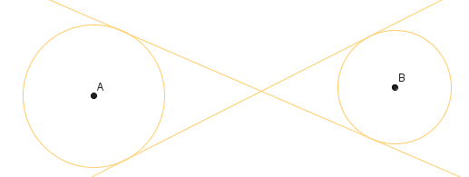 Goal: Construct a line (segment) tangent to both circles. Construct an inner tangent line.
